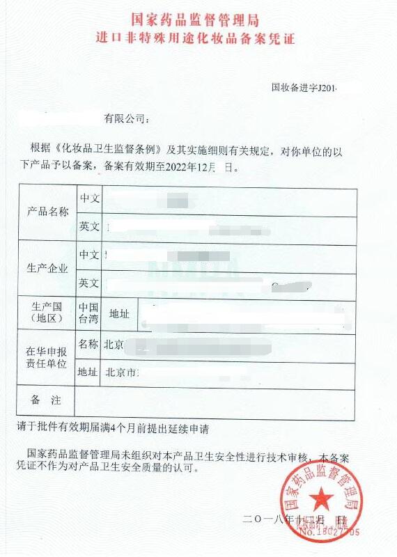 進口非特殊用途化妝品備案